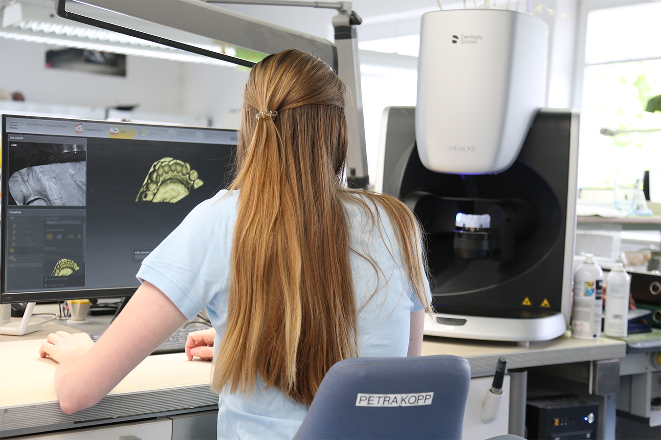 Dank digitaler Übermittlung der Unterlagen, können wir direkt mit den Arbeiten beginnen. Dadurch sind wir in der Lage, unter anderem Vollkeramikkronen präzise und effizient zu fertigen.